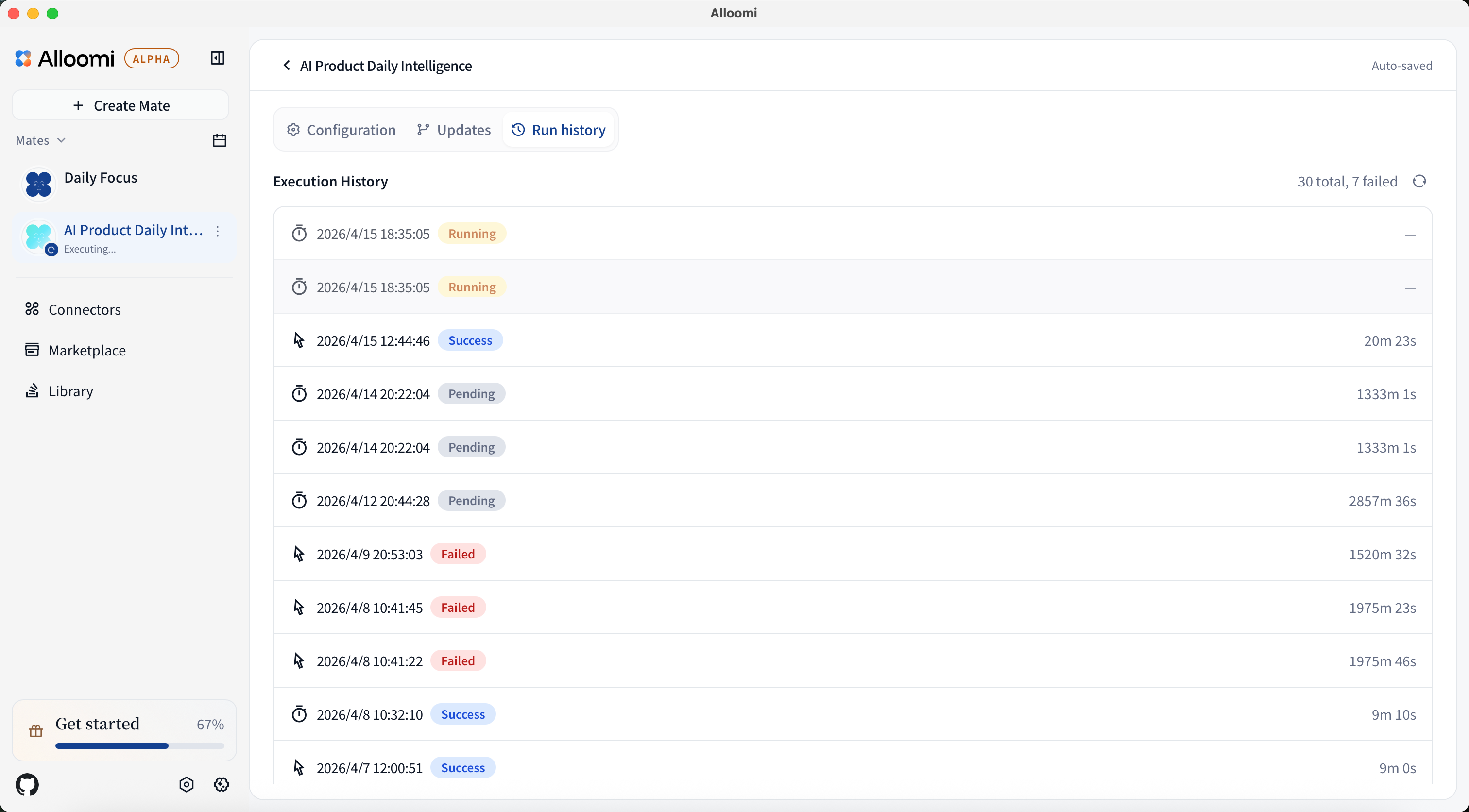 - View all past executions