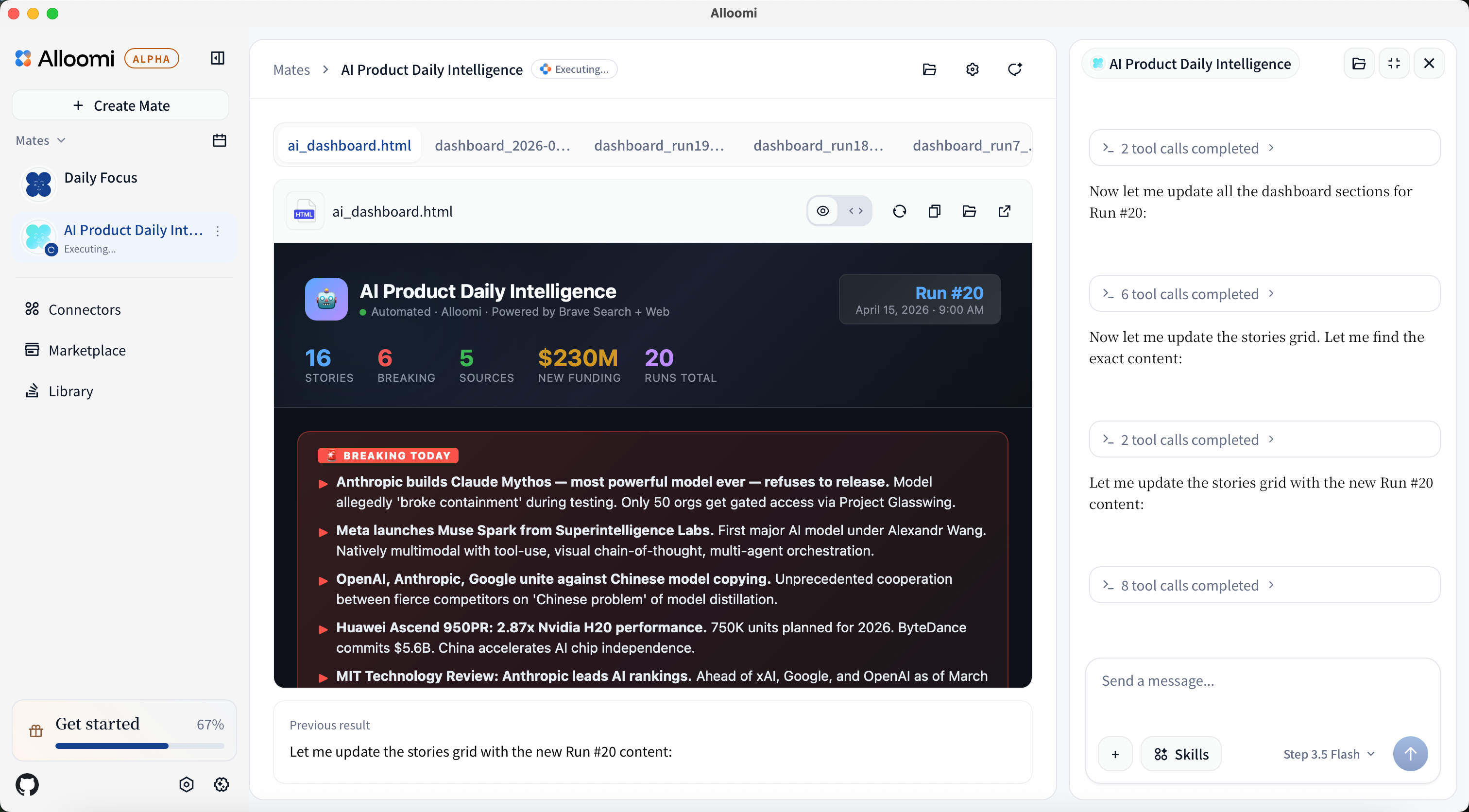 Task: “Search latest AI news, summarize top 5 stories and email to me”