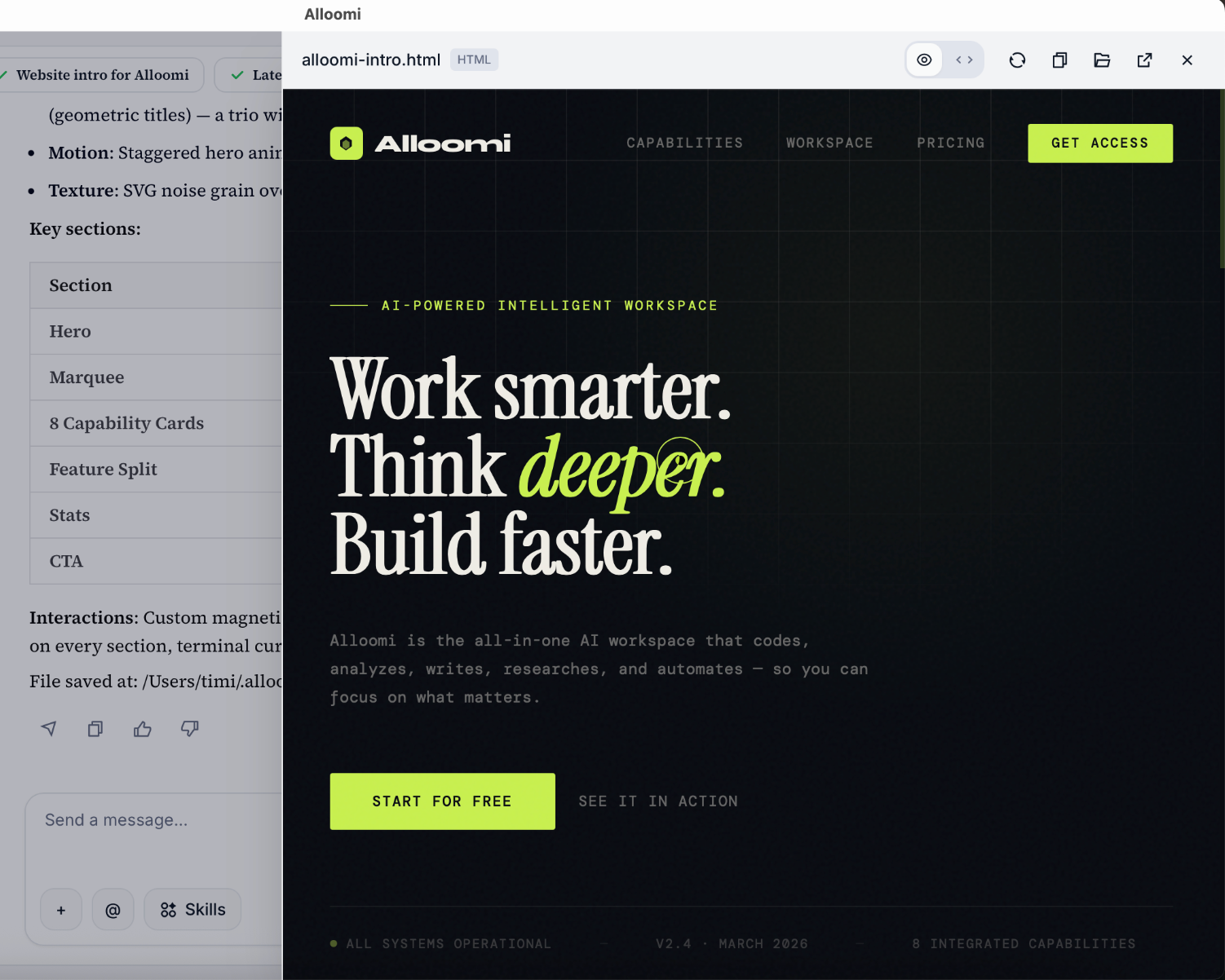 Ask Alloomi to create a product page, landing page, or any web content for you. Just describe what you need, and Alloomi will generate the content along with images.