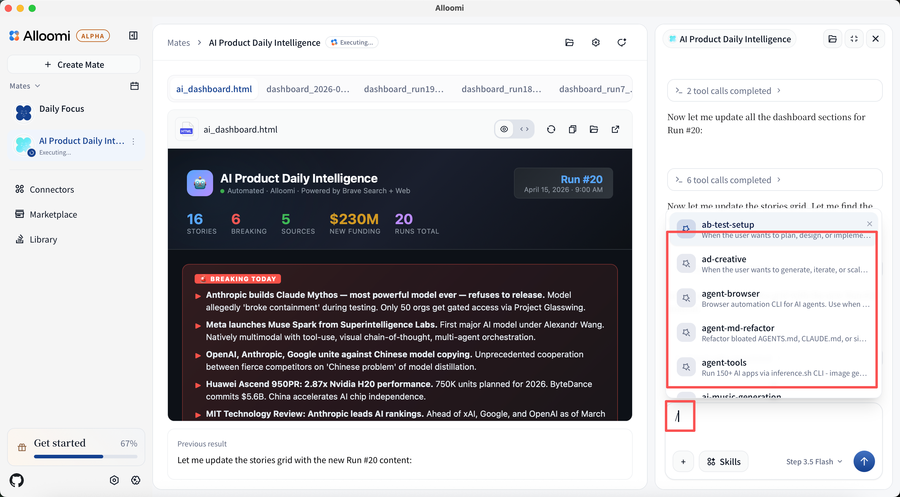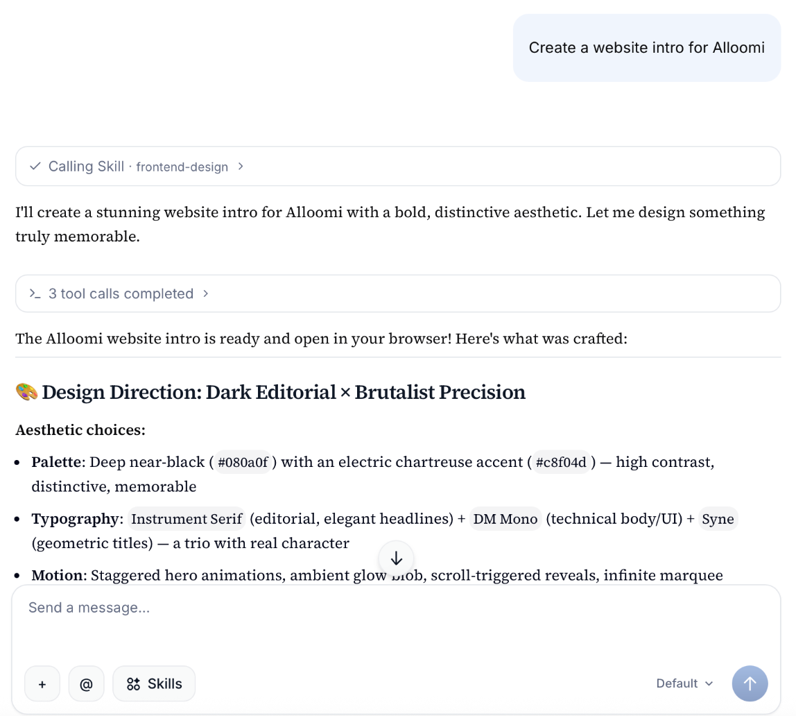 Alloomi has access to 200+ skills to help you accomplish various tasks. When you ask for something that requires specific expertise, Alloomi will automatically select the appropriate skills. Browse all Skills →