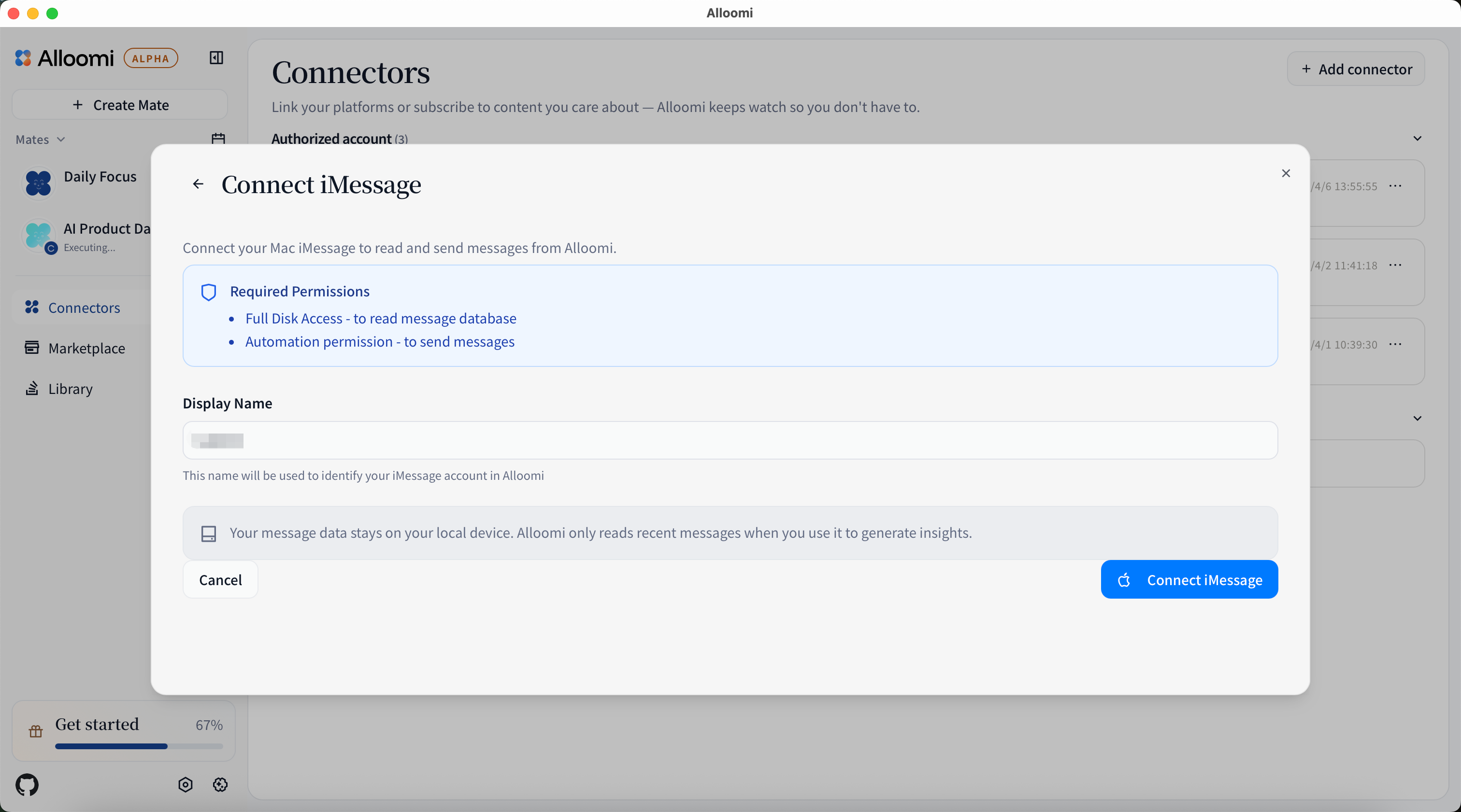 💡 Your message data stays on your local device. Alloomi only reads recent messages when you use it to generate insights.