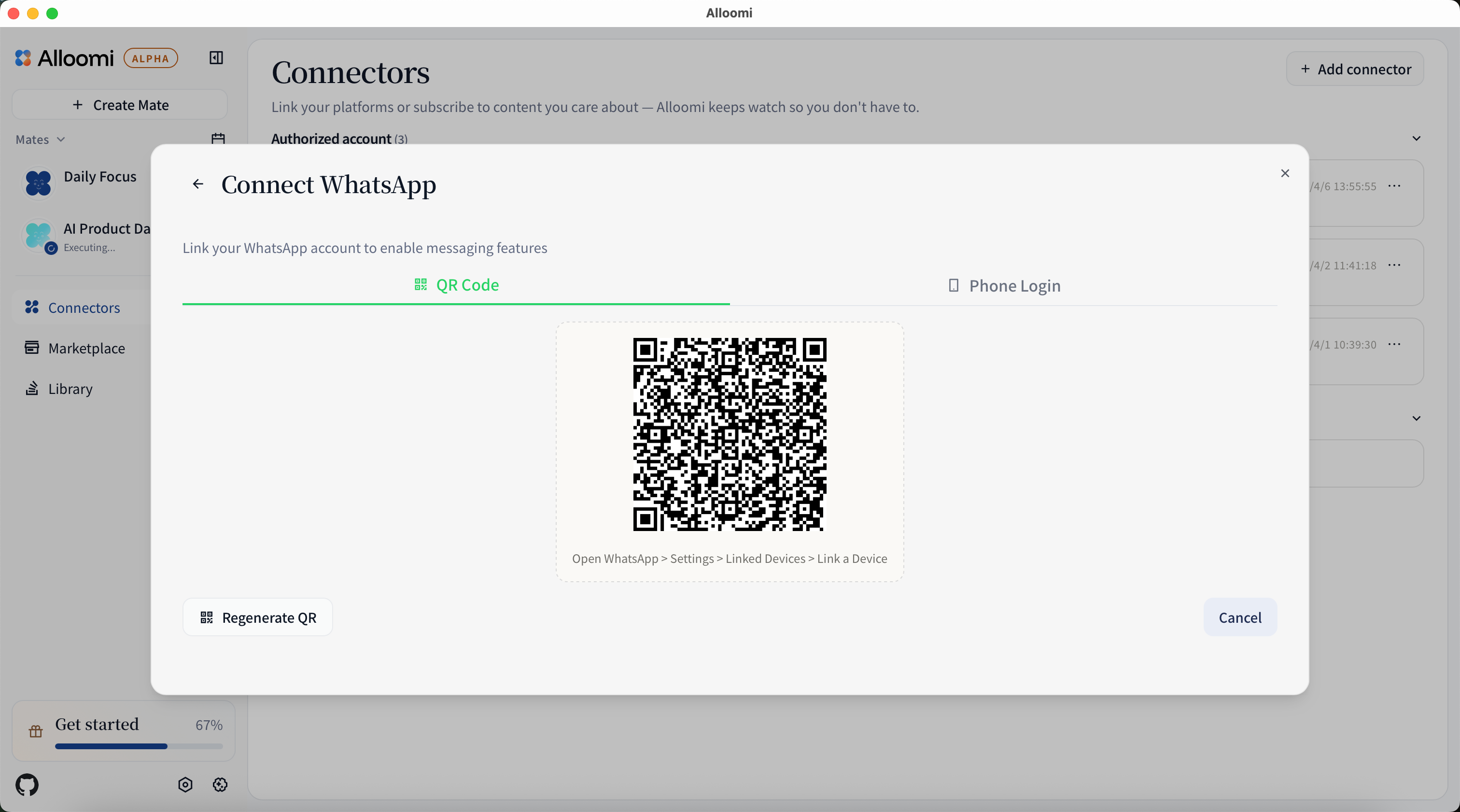 After clicking [Connect WhatsApp], scan the QR code in the WhatsApp app to complete authorization.