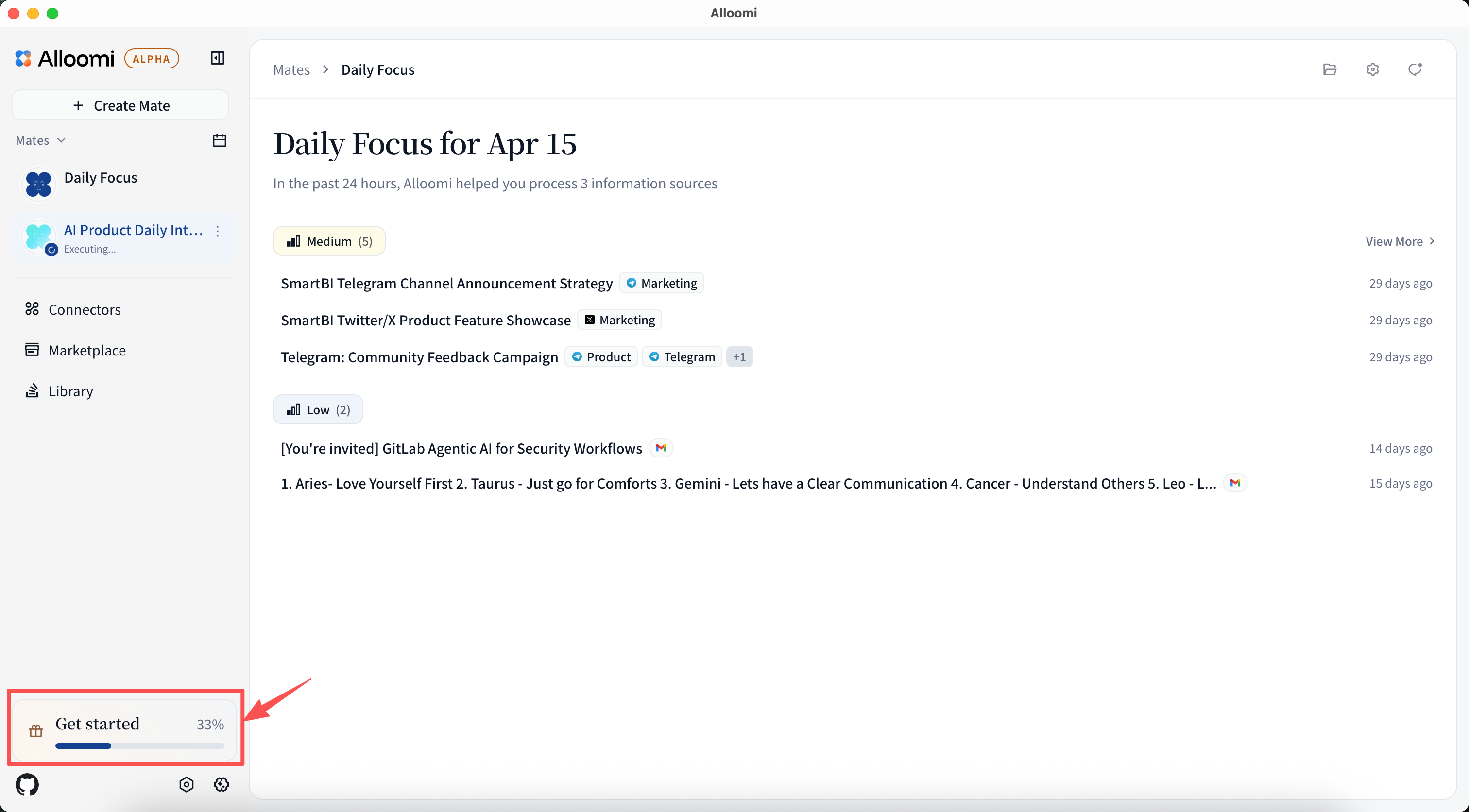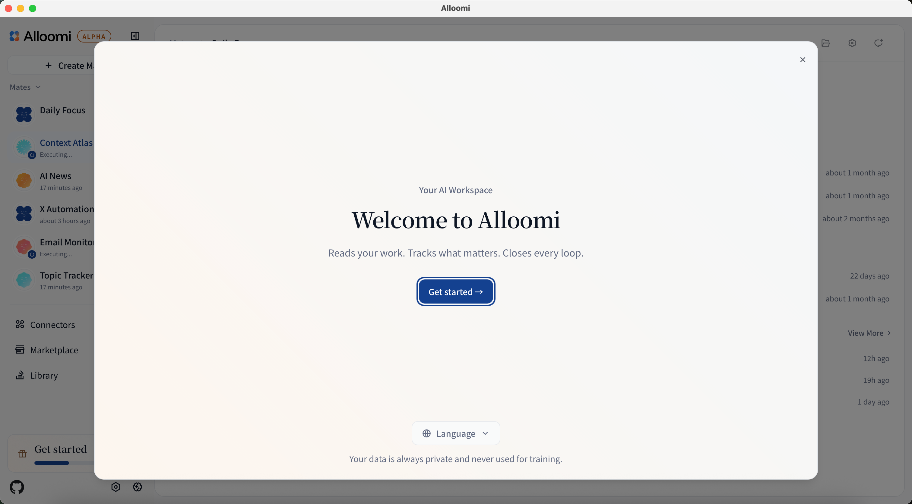 Open Alloomi and create an account with your email. No credit card required. Your data stays local-first.