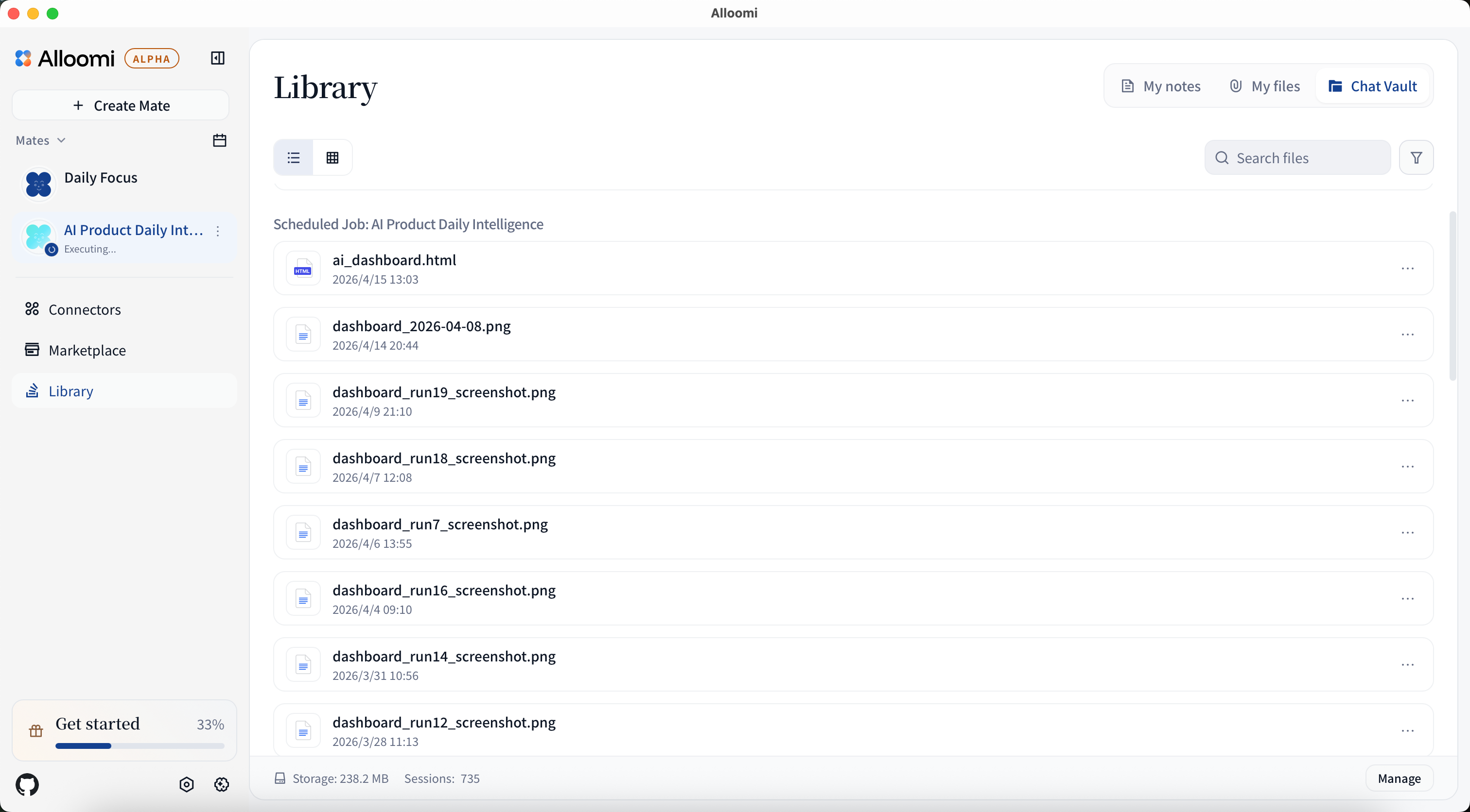 Upload documents and ask AI questions about them. Build your personal knowledge library that Alloomi can query.